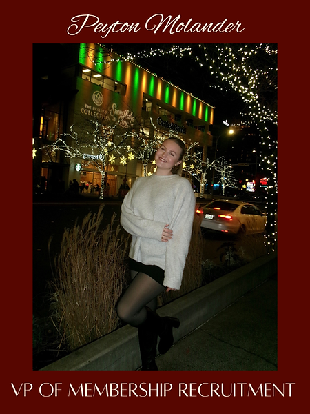 Hi I’m Peyton M and I’m from Snoqualmie WA! I’m currently a junior majoring in Economics and Neuroscience and minoring in Math and Data Science. I’m honored to serve as Vice President of Membership Recruitment for Gamma Zeta in 2026. I’m so grateful for all of the meaningful connections I’ve made, and finding my best friends through Alpha Phi! I’m so excited to continue the work towards growing our chapter and expanding our Alpha Phi community!